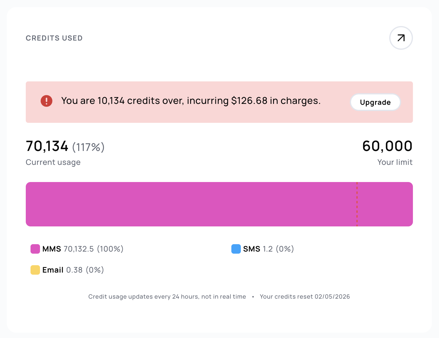 We've updated our credit widget on the dashboard to show overages more clearly.